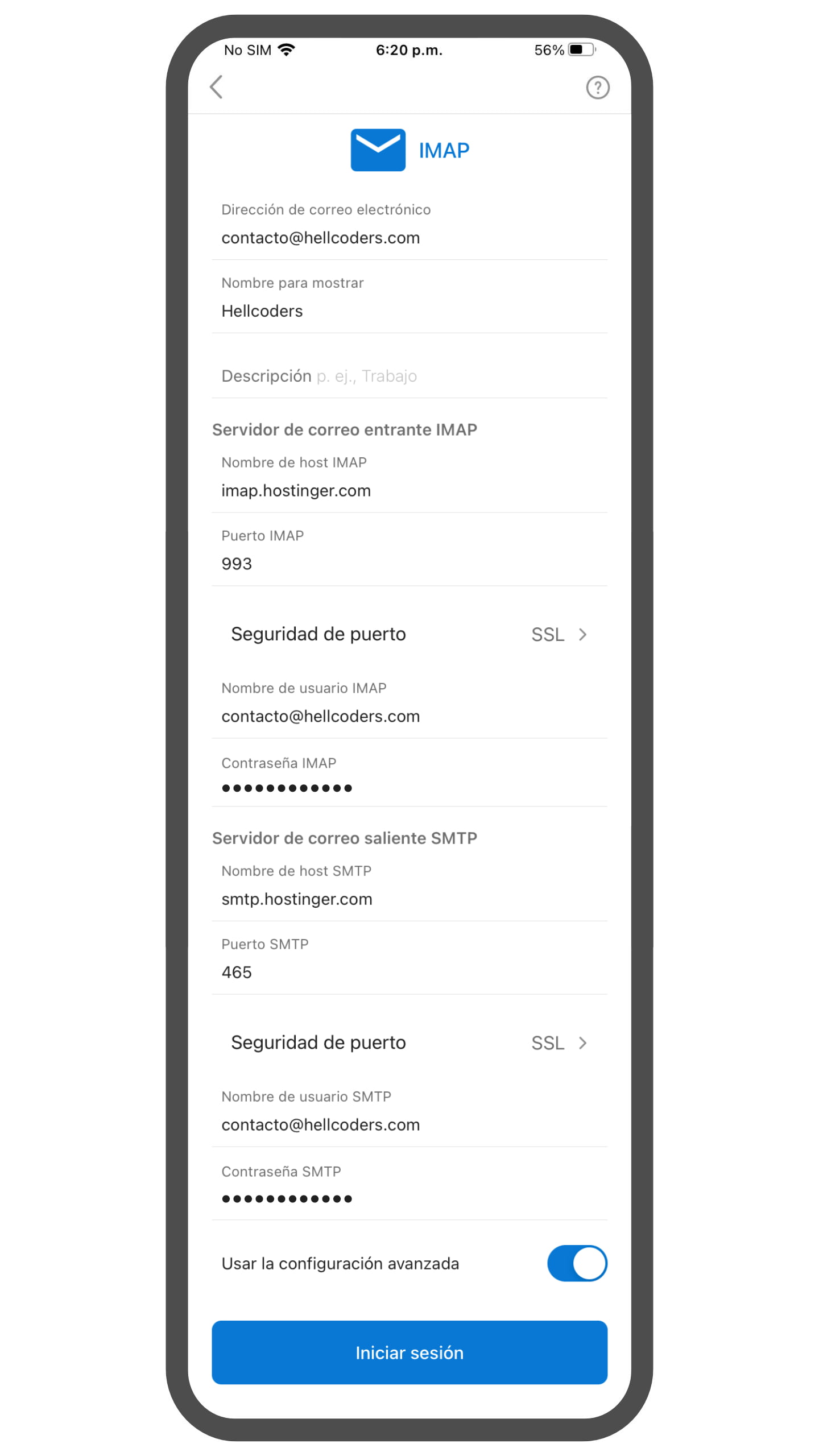 Finalmente solo debes dar click en “Iniciar Sesión” para agregar tu cuenta.